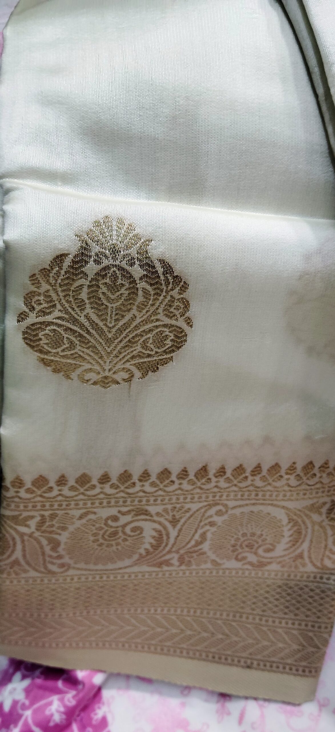 This saree is perfect for women who love traditional silk sarees but also want a modern touch in design and color. The cream and blue combination is timeless and suits all skin tones, making it an excellent choice for gifting as well. Whether you are a bride-to-be, bridesmaid, or simply attending a grand function, this saree adds a royal charm to your presence.