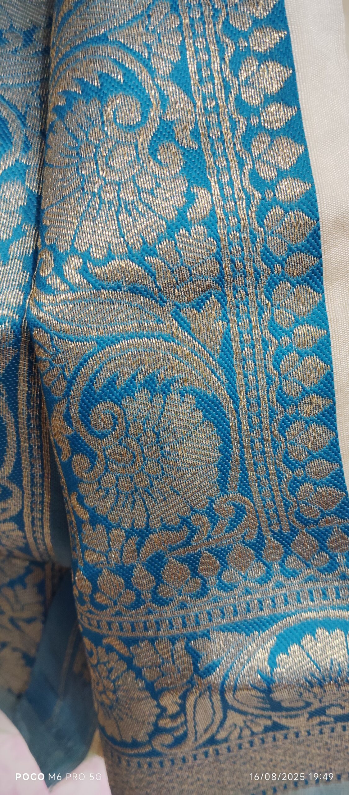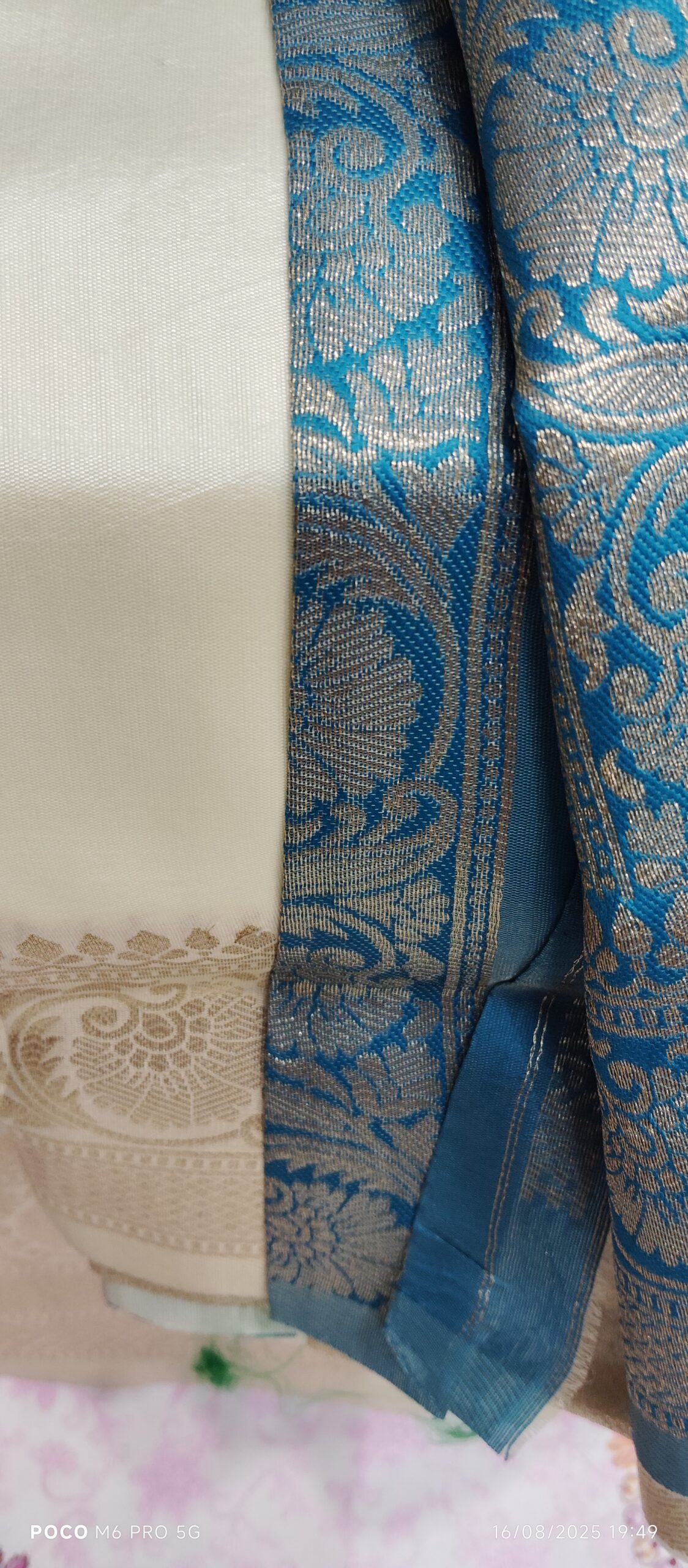 If you are looking for a saree that offers elegance, comfort, rich weaving, and a luxurious finish, this Cream Blue Silk Saree is the perfect choice for your special occasions.